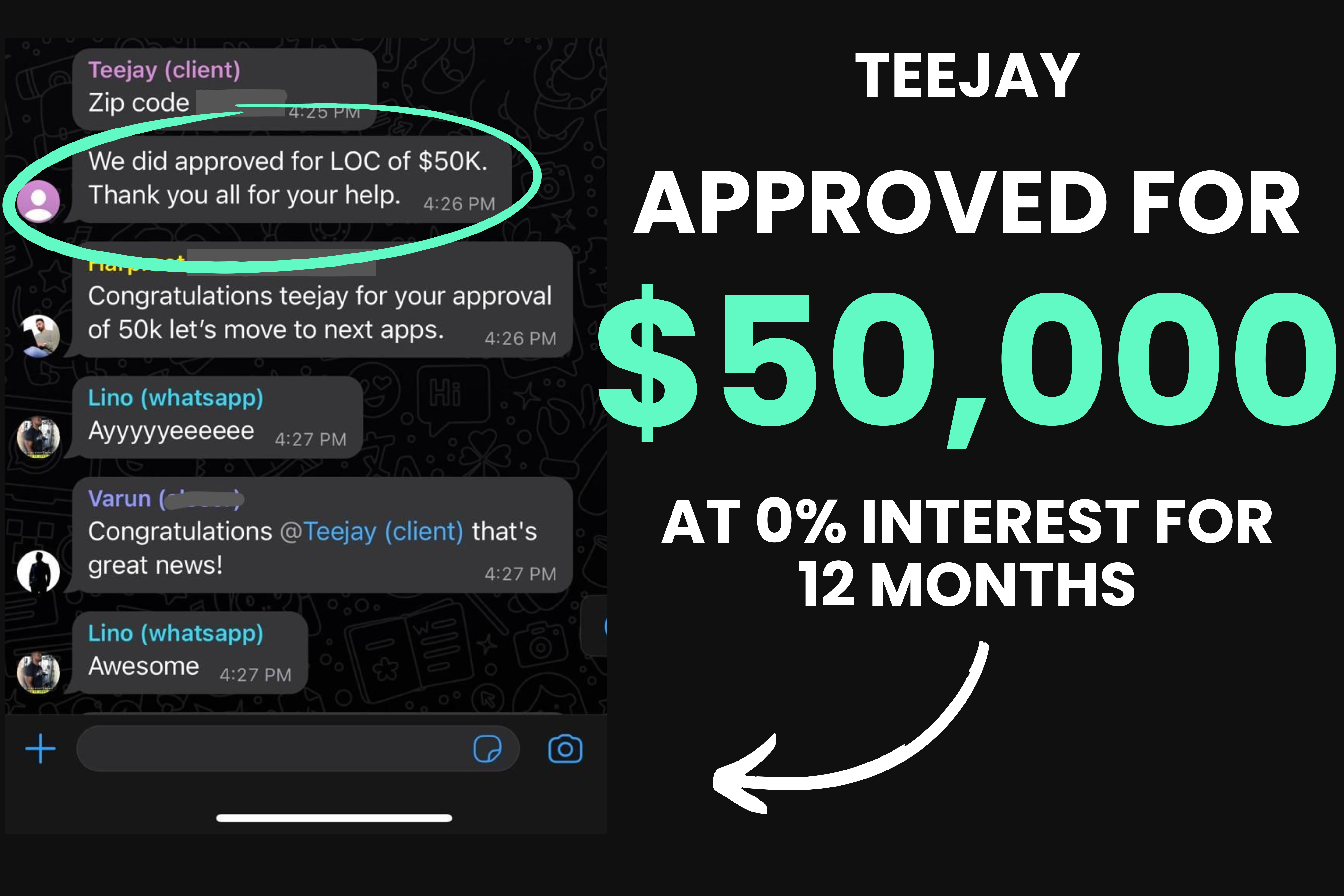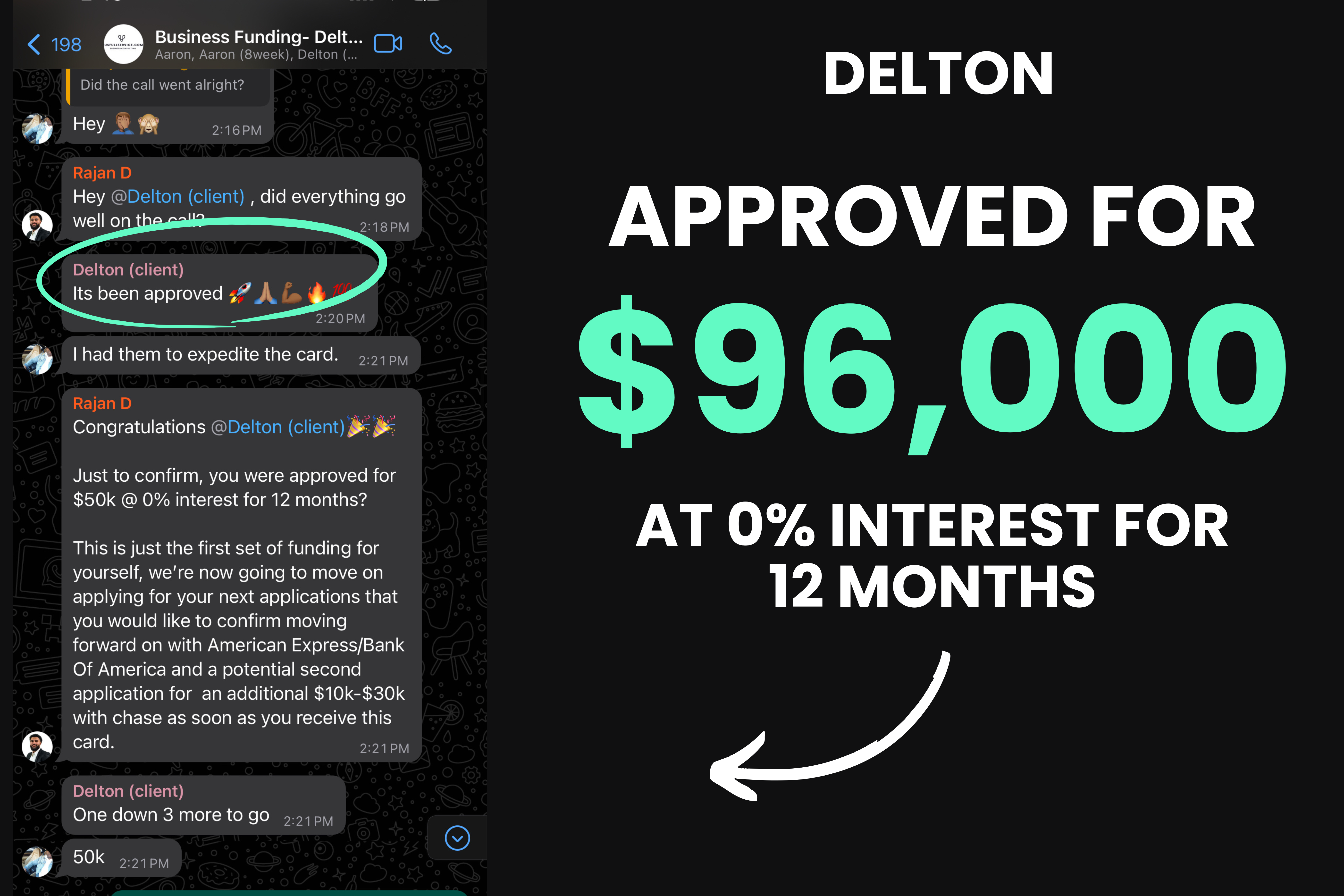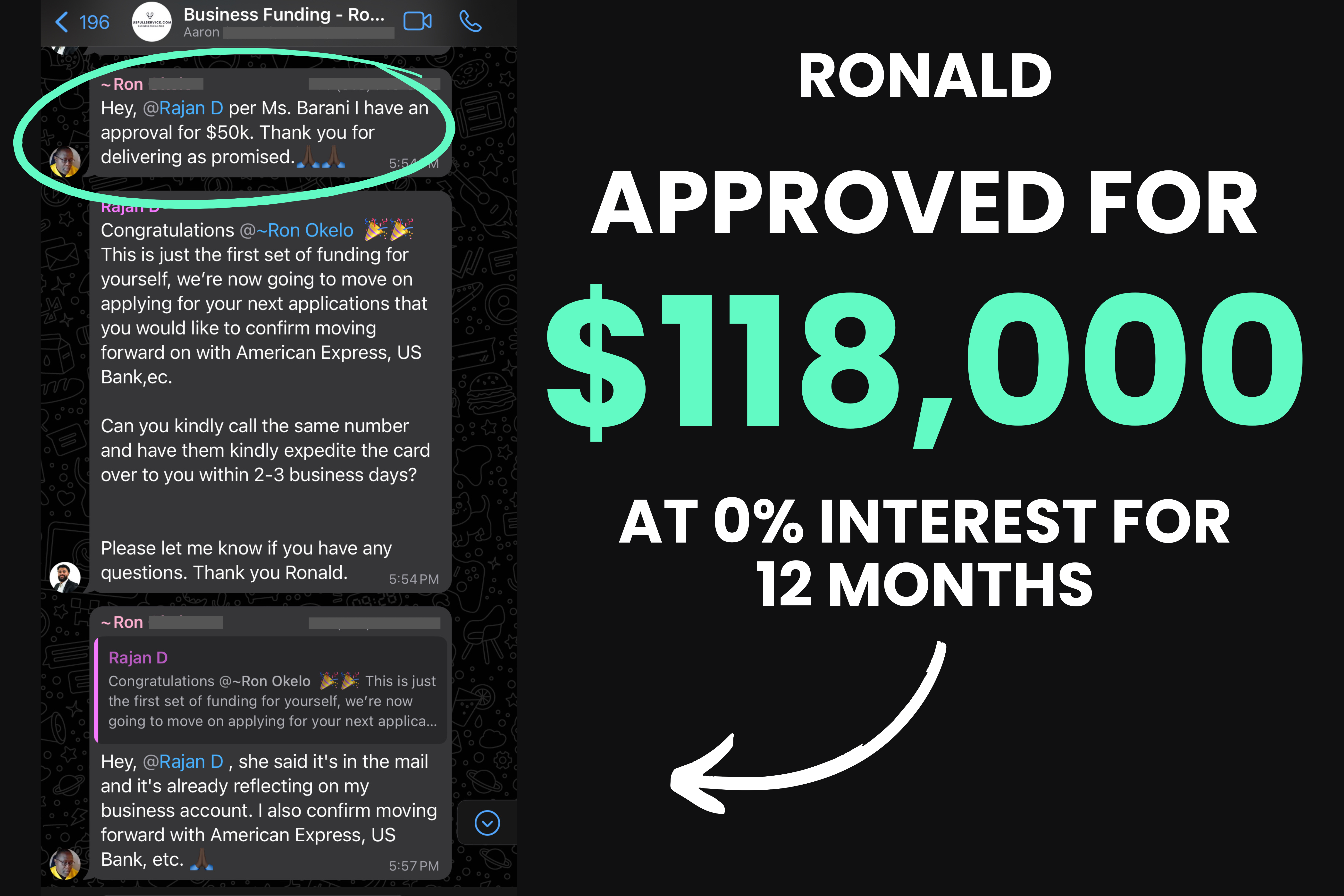 “In just 14 days they got me approved for $96,000 at 0% interest for 18 months…. the first thing I did was clear up over $20,000 in personal debt and as soon as I paid that off it felt like a huge burden was lifted off my shoulders.”