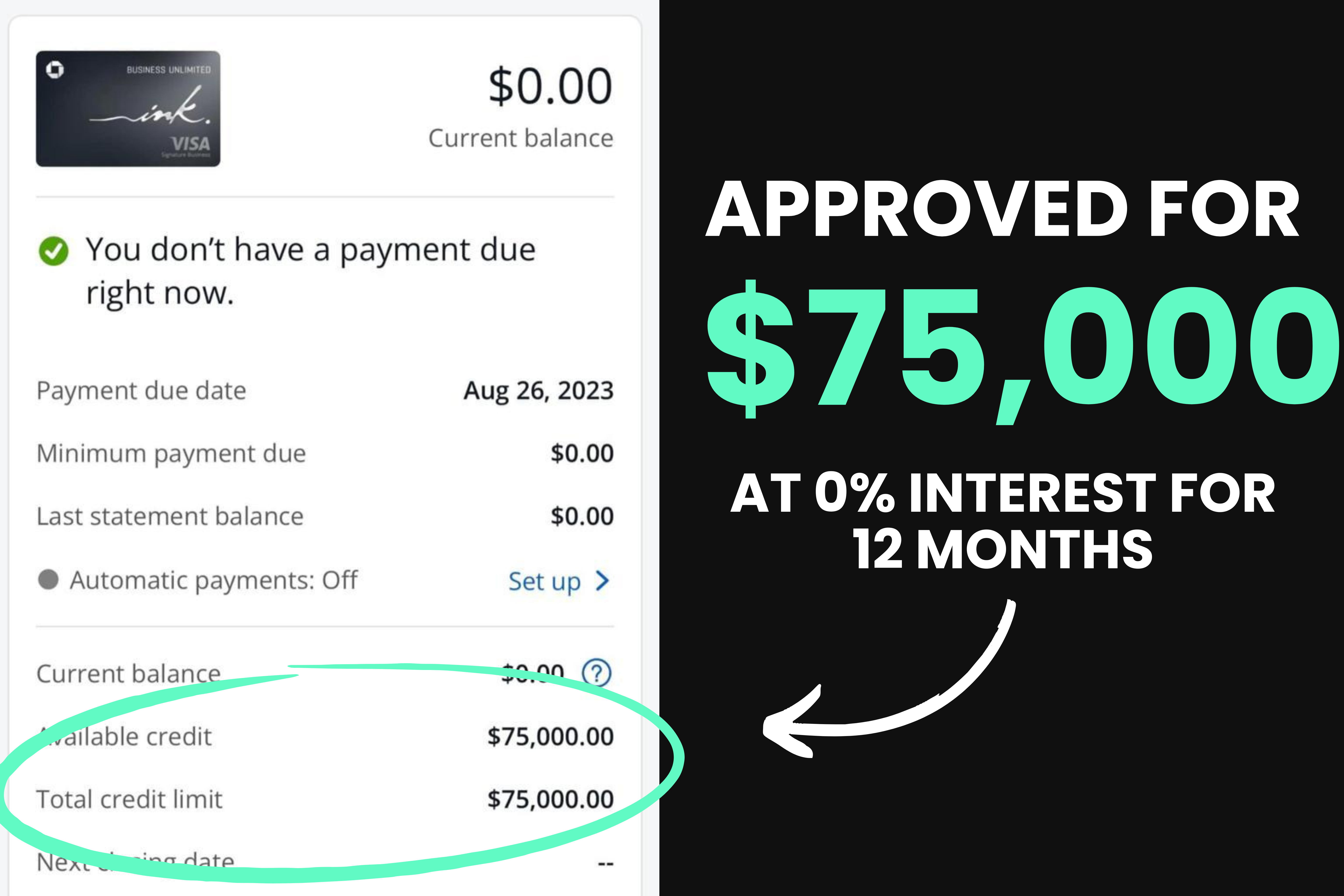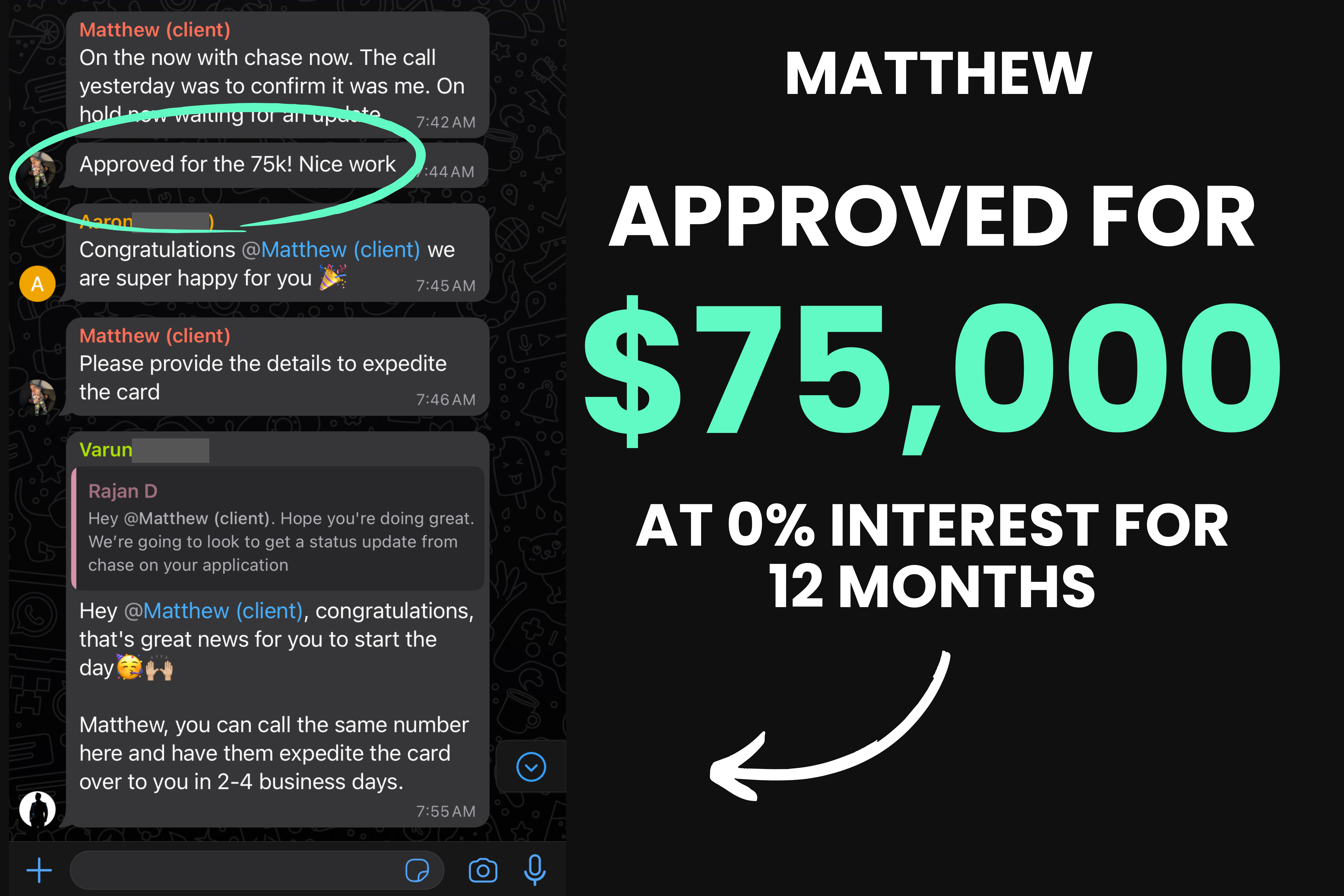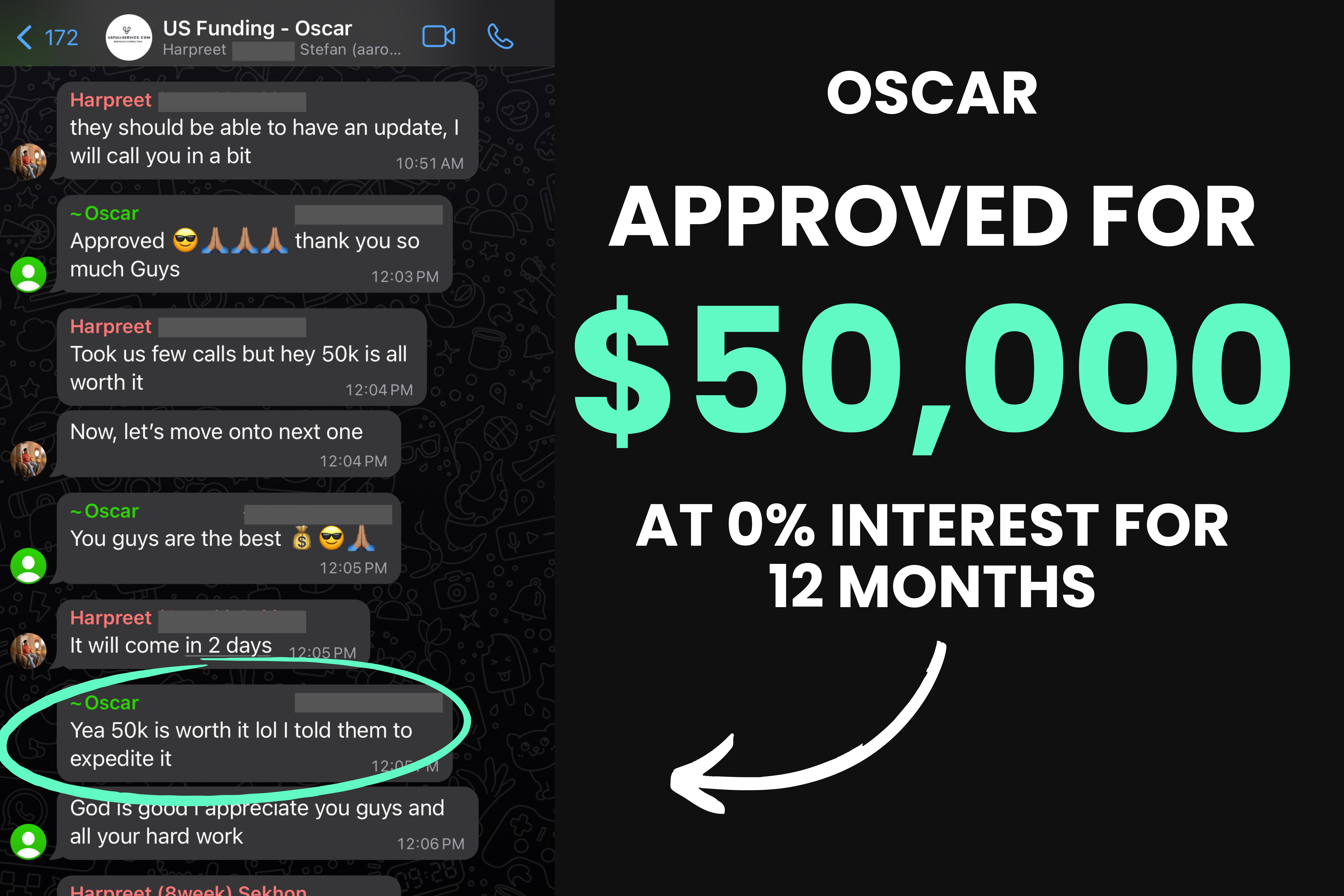 “In just 14 days they got me approved for $96,000 at 0% interest for 18 months…. the first thing I did was clear up over $20,000 in personal debt and as soon as I paid that off it felt like a huge burden was lifted off my shoulders.”